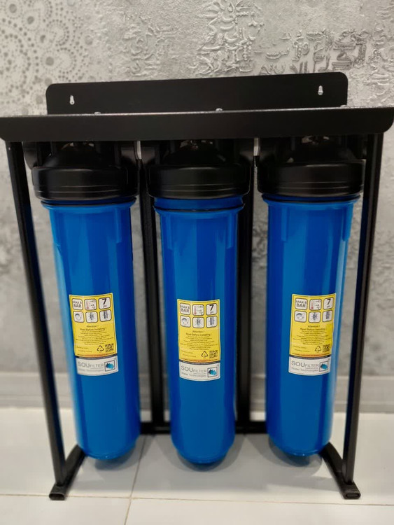 پیش تصفیه آب سوفیلتر جامبو 3مرحلهای20 اینچ یا تصفیه آب مرکزی جهت حذف رسوبات،گل ولای و کلر در ورودی ساختمان بعد از کنتور آب نصب میگردد لوازم منزل نظیر شیرآلات،لباسشویی،ظرفشویی،پکیچ و … در صورت استفاده با آب آلوده دچار مشکل خواهند شد،